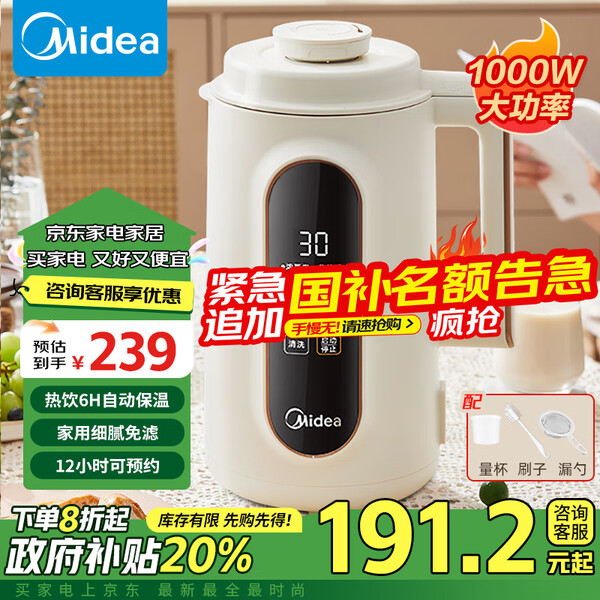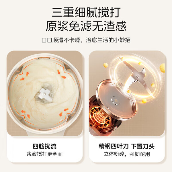 摩飞电器(Morphyrichards) 破壁机多功能家用静音迷你免滤加热豆浆机辅食机榨汁机养生壶 MR8200椰奶白【破壁豆浆杯】