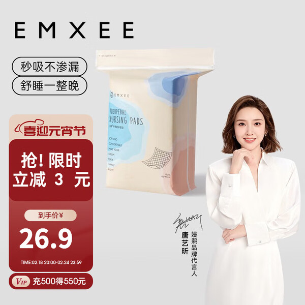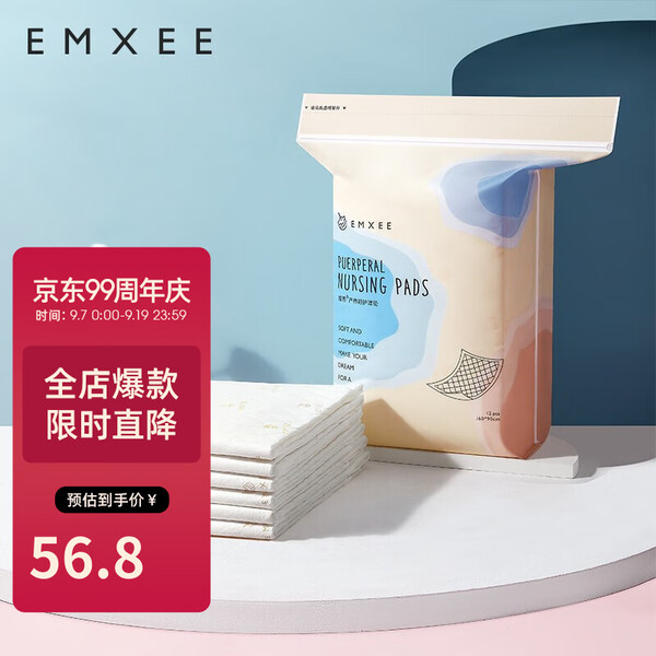 EMXEE 嫚熙 产妇专用护理垫 12片,绵柔亲肤不刺激,强劲吸湿不反渗,舒爽透气不粘腻。超柔美棉,温和亲肤,专为孕产妈妈而生,柔软亲肤表层,如卧云端的舒适。