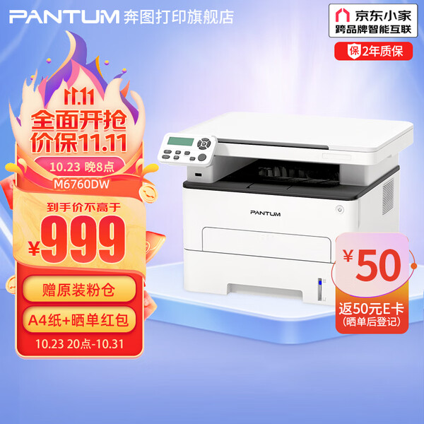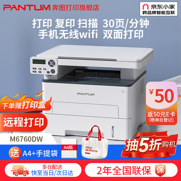 奔图(PANTUM)P2206W 黑白激光打印机 家用小型无线打印机 学生错题资料打印1600页印量 静谧黑