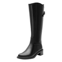真美诗(Joy&peace)董洁同款长腿法则冬季新款牛皮高筒骑士靴YPU57DG4 黑色 37