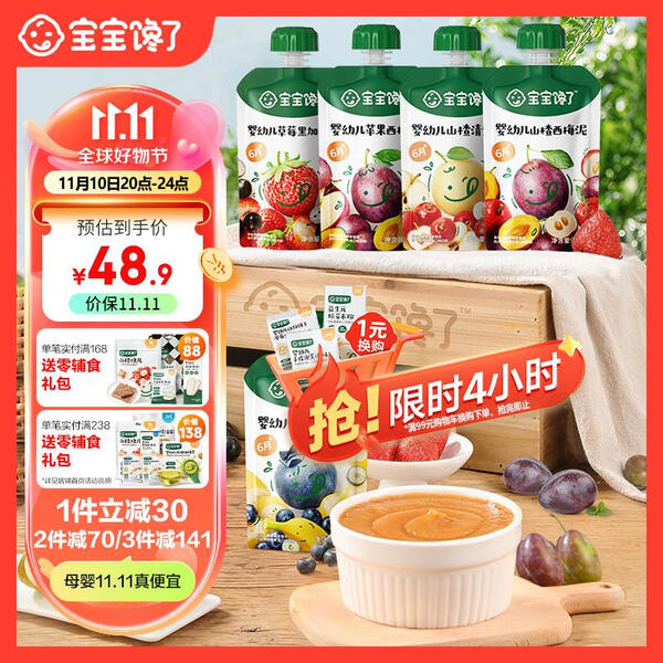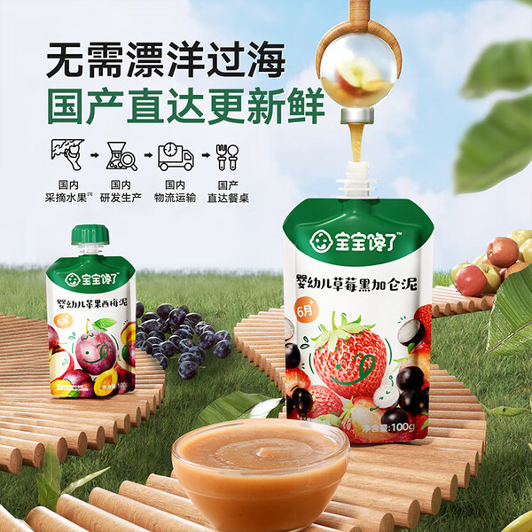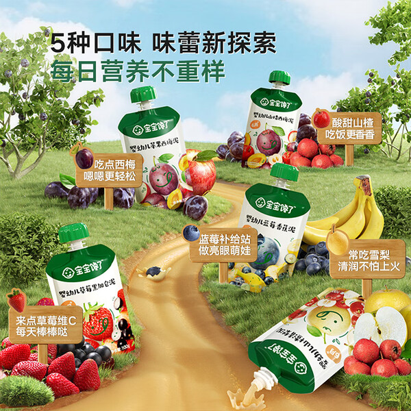 原采好水果,每口自然酸甜。 宝宝馋了 婴儿无添加盐水果泥,原采好水果,每口自然酸甜。微米级细腻研磨,绵密好吸收。科学搭配,一口吃到多种水果营养。