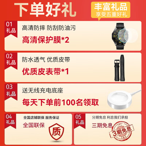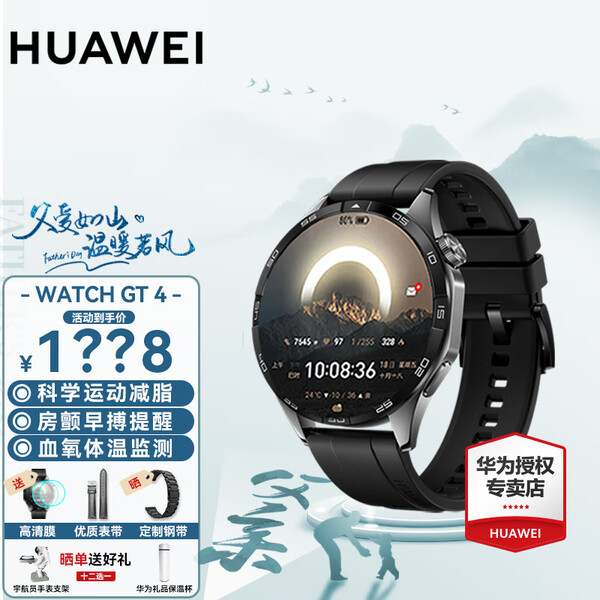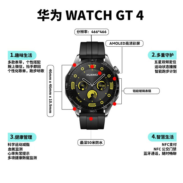 华为(HUAWEI)手表WATCH GT 3 Pro【咨询享优惠】运动智能ECG心电图心率体温血氧监测两周续航送男女士朋友礼物6 46mm活力款-黑色氟橡胶表【皮表带+贴膜】 好礼十选一