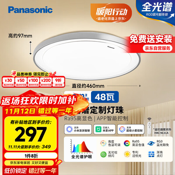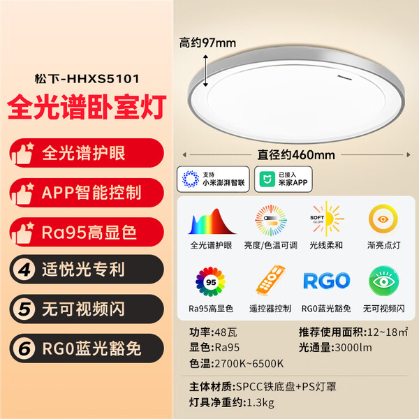 松下(Panasonic)吸顶灯全光谱护眼客厅大灯140瓦HHXQX163【国家补贴】【包安装】
