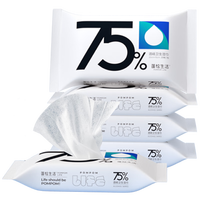 蓬松生活75%酒精湿巾消毒一次性杀菌率99.9%便携小包 加厚加大15*20cm 酒精湿巾 20抽 5包