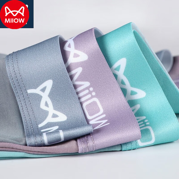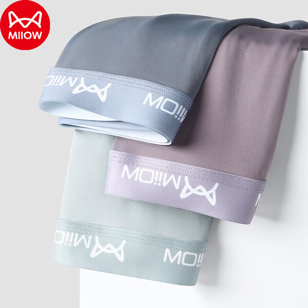 猫人内裤男士3条装轻薄透气抗菌裆纤维平角内裤男生莫代尔四角裤衩 车缝款:灰蓝/浅灰/草绿 3条 L 建议体重90-100斤)