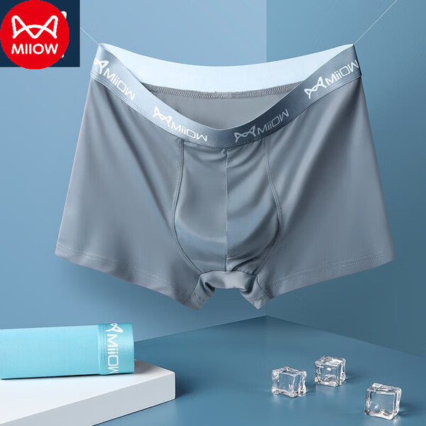 猫人内裤男士3条装冰丝抗菌裆轻薄透气四角短裤头 大网眼/深灰+天蓝+浅绿 3条 L (适合体重80-100斤)