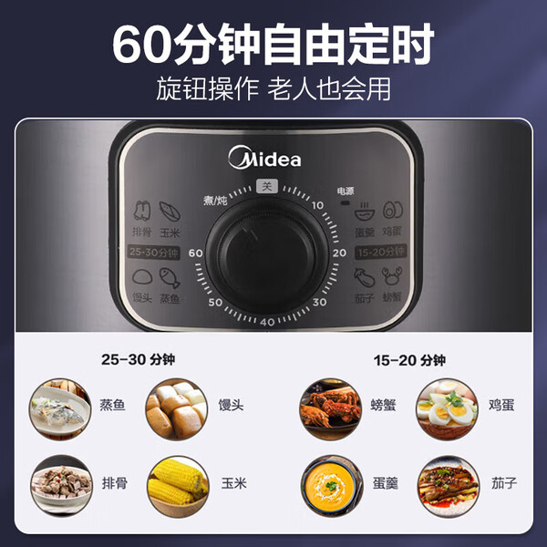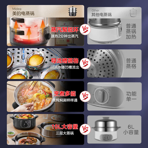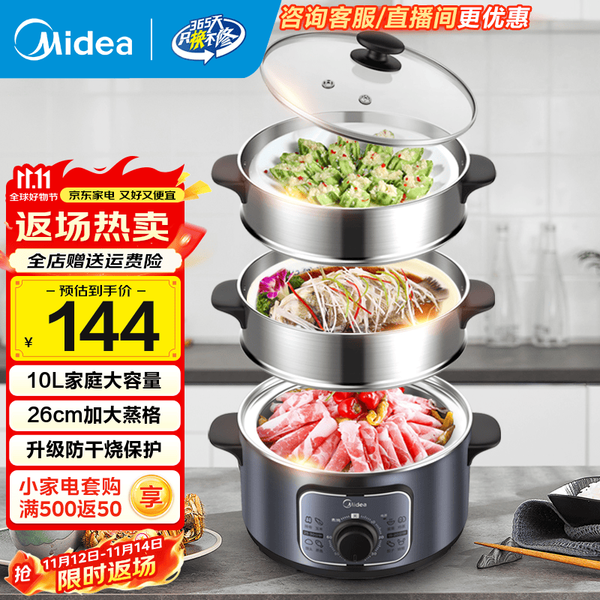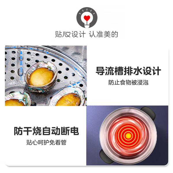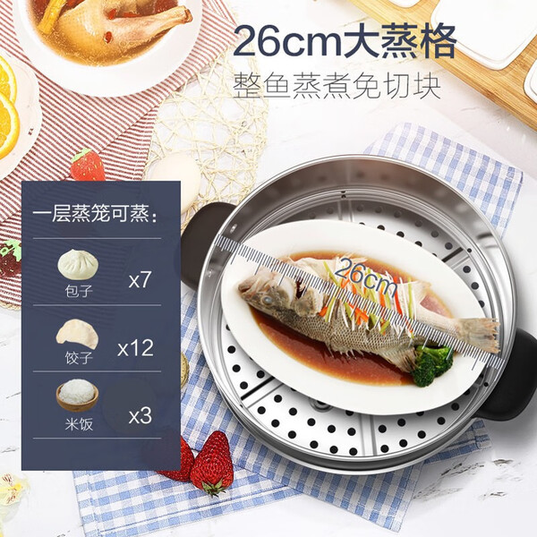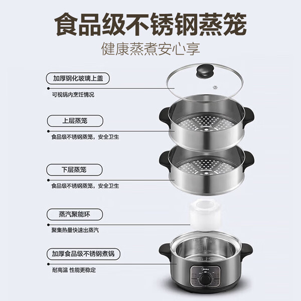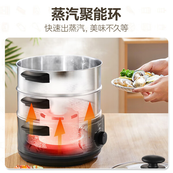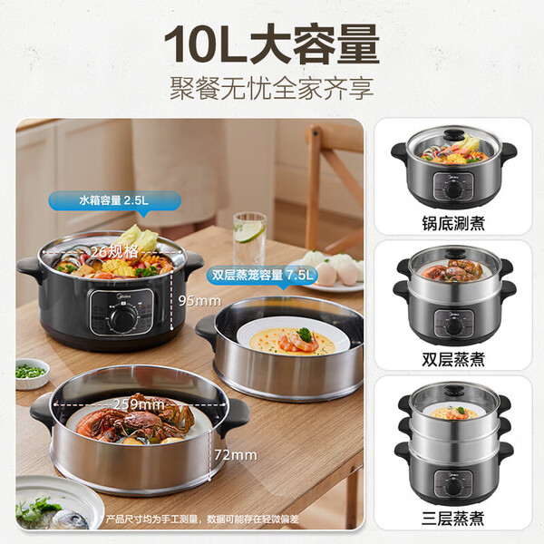 美的(Midea)电蒸锅 电煮锅 电火锅 家用多功能锅电锅蒸包子锅电热锅煮蛋器不锈钢蒸笼大容量多用途锅 10L 【26cm口径】ZG26EASY401