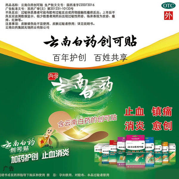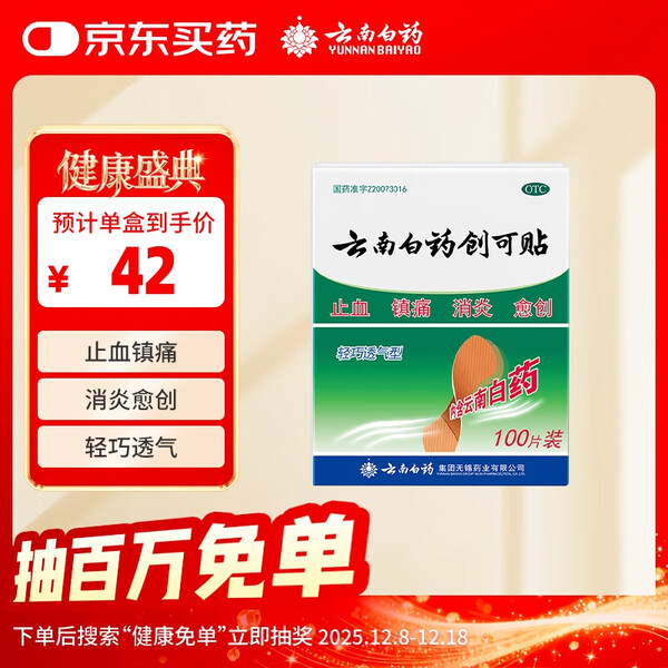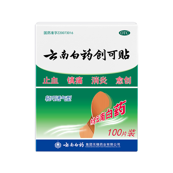 云南白药创可贴创口贴止血贴止血消炎透气高弹性不紧绷1.9cm*2.3cm*100片等用于小面积开放性创伤