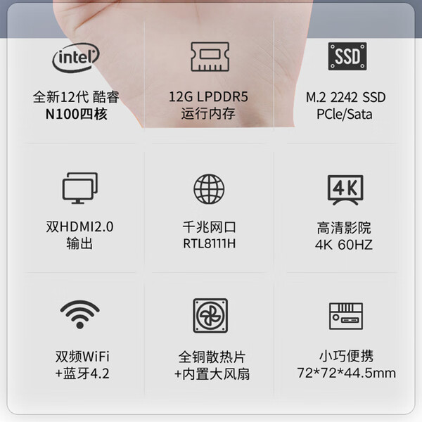 摩方MoreFine M6S 12代N150迷你主机双屏输出win11办公家用便携miniPC微型小电脑 M6S_N100四核4K双HDMI 12G DDR5_不带硬盘