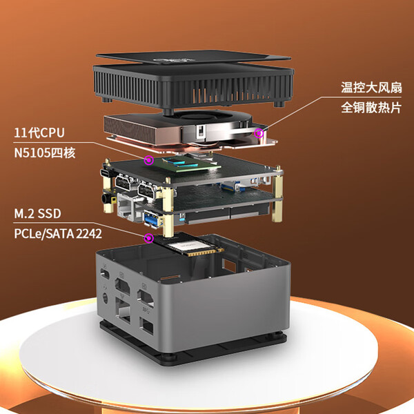 Maxtang 大唐台式NUC迷你英特尔12代四核J6412双网口组装电脑软路由商务高速固态无风扇主机 【双网版】J6412 准系统(无内存硬盘系统)