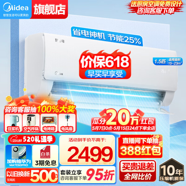 美的(Midea)空调挂机1.5匹/2匹酷省电2025款 新一级能效变频冷暖家用自清洁壁挂式 国家补贴 家电以旧换新 大1.5匹 一级能效 【酷省电】