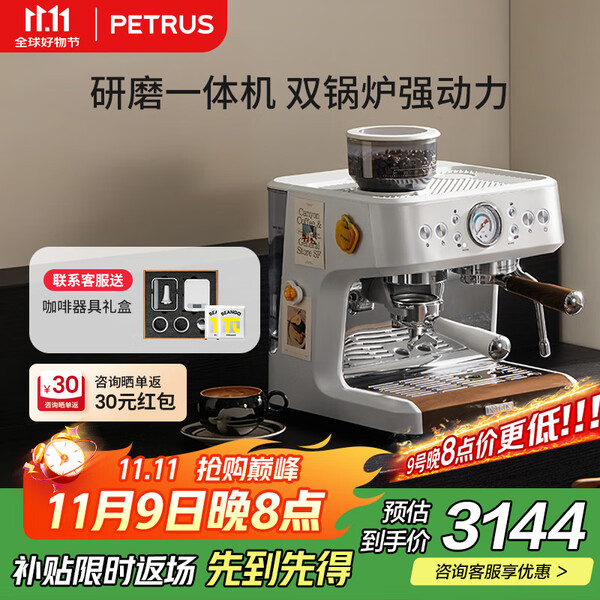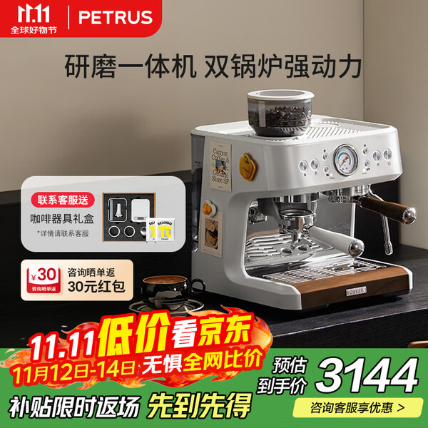 柏翠(petrus)咖啡机意式家用小型小白醒醒Pro复古迷你办公室用全半自动浓缩打奶泡一体机 PE3366Pro 节日送好物 小白醒醒Pro( 下单前咨询送惊喜赠品 )
