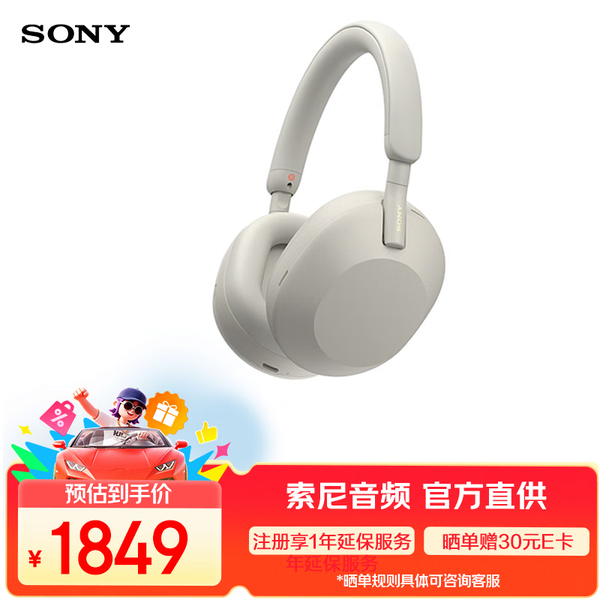 索尼(SONY)WH-1000XM5头戴式无线蓝牙降噪耳机 AI智能降噪Hi-Res高解析度音质 触控清晰免提通话耳麦 黑色