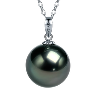珍珠皇后18K金大溪地黑珍珠吊坠 正圆海水珍珠项链生日礼物女