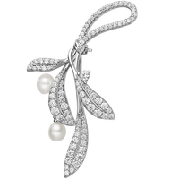 HEFANG何方珠宝月桂叶珍珠胸针优雅别针女轻奢高级感生日圣诞礼物送女友 银色