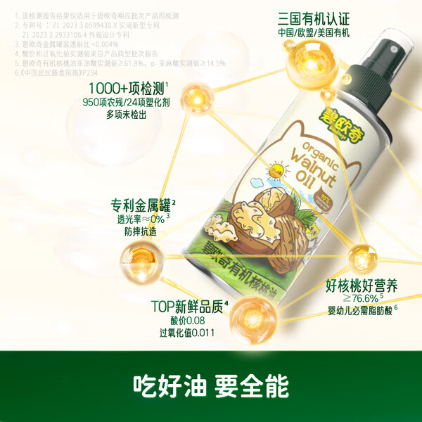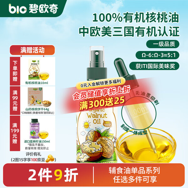碧欧奇有机核桃油 亚麻籽油 紫苏籽油宝宝营养添加辅食用油组合油 【初尝第一口油】有机核桃油100ml