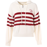百图betu女装秋季新款旷野美拉德衫连帽条纹针织衫女2409T33 米白 XS