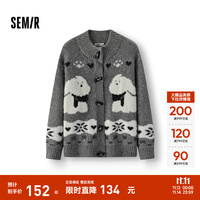 森马(Semir)针织开衫女冬半高领小狗提花牛角扣毛衫宽松2025新款可爱上衣 灰色调00322 XS