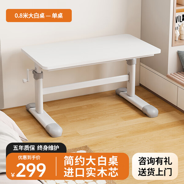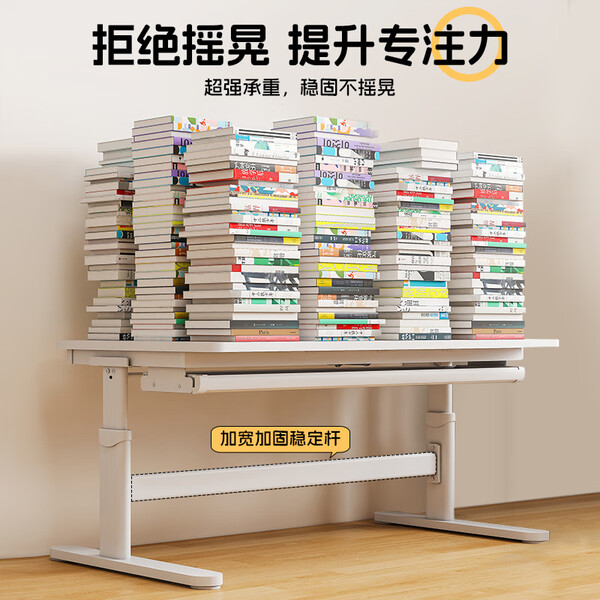 美好童年儿童学习桌学生家用实木学习桌椅套装可升降大白桌青少年电脑桌子 【店长推荐】120*60+书架+抽屉