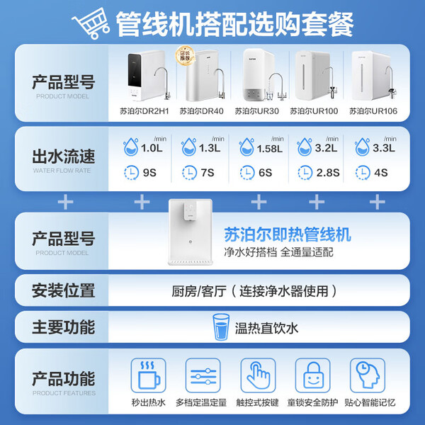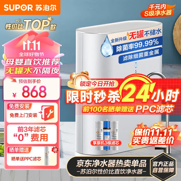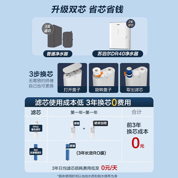 苏泊尔(SUPOR)【国家补贴】净水器家用厨房厨下式直饮机净水机净饮机RO反渗透纯水机400大通量无罐过滤器DR40