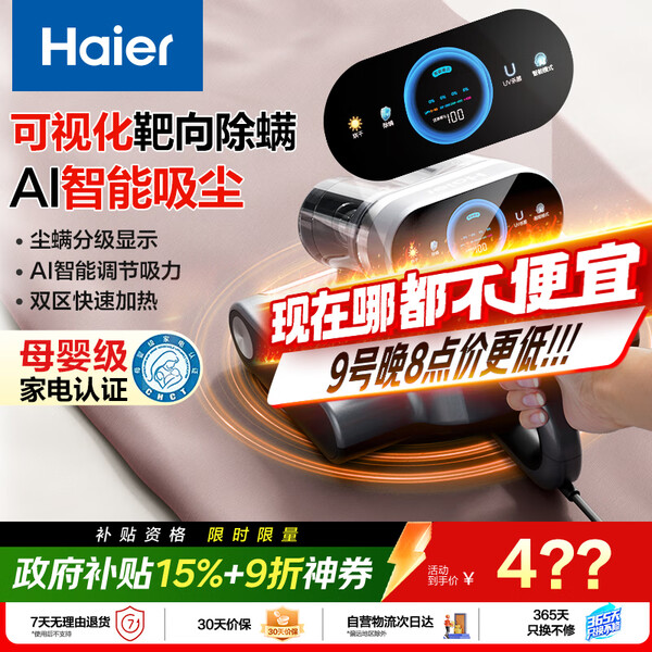 海尔(Haier)【母婴级】世家可视化AI调节智慧眼除螨仪床宝床上吸尘器高温杀菌除螨除尘除宠物毛发礼物送礼CS1S
