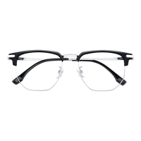 蔡司 镜片 男款半框眼镜框 新潮防蓝光近视眼镜 眉线框钛材镜架31808 黑银色C1 单镜框(配镜盒镜布)