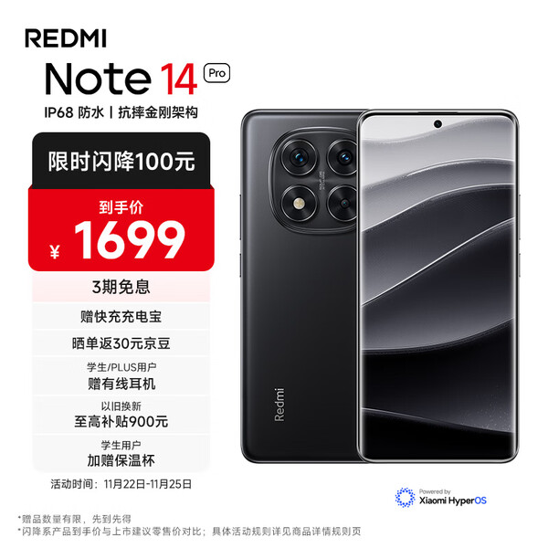 小米 REDMI Note14 5G 金刚品质 5110mAh大电量 大光圈超感相机 8GB+128GB 子夜黑 红米手机