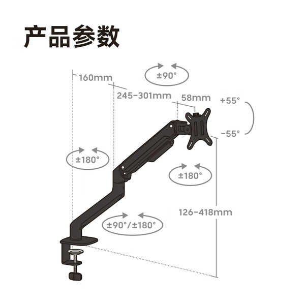 NB显示器支架机械臂显示器支架臂屏幕支架电脑支架臂屏幕支架显示器增高架免打孔支架适配HKC17-32吋