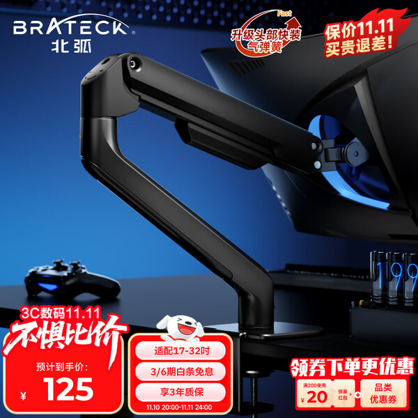 Brateck北弧 显示器支架 机械臂 电脑支架桌面夹式底座 大承重屏幕增高架E560黑17-45吋 悬空托臂适配卓威