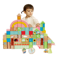 铭塔木制积木玩具 莫兰迪色系儿童拼装拼搭早教启蒙生日礼物 100粒大颗粒(收纳桶装)