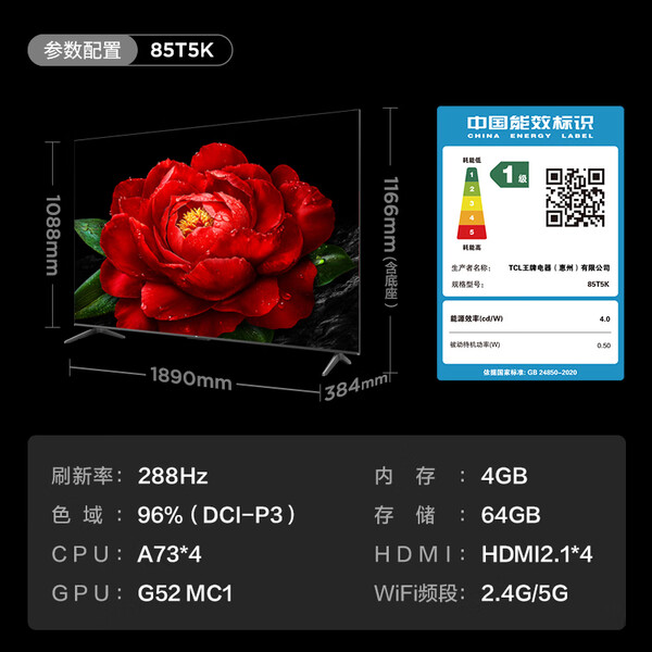 华为电视智慧屏V85 尊享巨幕超大屏 85英寸4K超高清 鸿蒙系统 小艺智能语音高端家庭企业平板电视机 85英寸 华为智慧屏 帝瓦雷影院声场(4+64G)