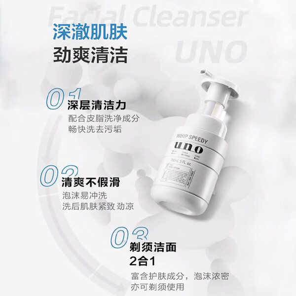 吾诺(UNO)泡沫洗面奶150ml男士控油保湿清洁护肤洁面乳日本资生堂七夕礼物