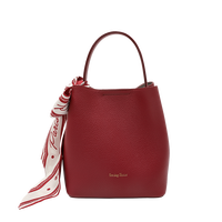 西木汀 异乡人 真皮手提水桶包单肩女包小众斜挎包通勤婚包 石榴红