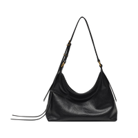 西木汀 自由畅想 头层牛皮托特包新款女hobo包单肩腋下包 深邃黑小号