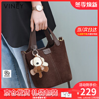 viney牛皮水桶包包女包品牌手提包斜挎包生日礼物送女友老婆 【咖啡色】实用高级感洋气单肩包 时尚轻奢百搭休闲复古磨砂腋下包