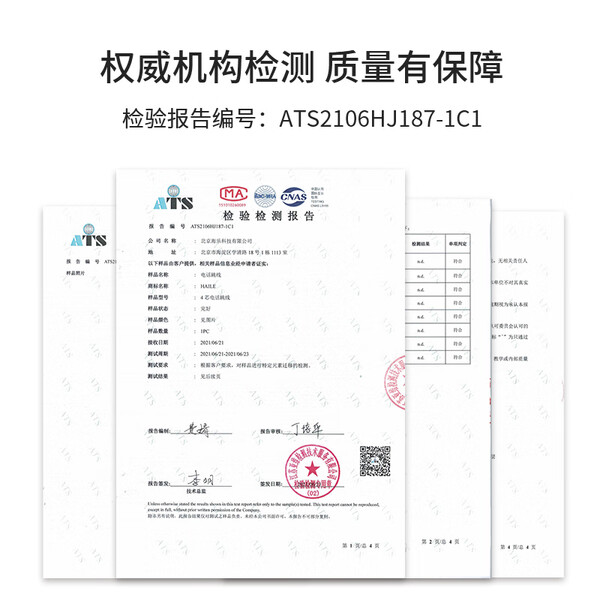 HAILE海乐 电话线4芯电话跳线HT-110-2M灰色 2米