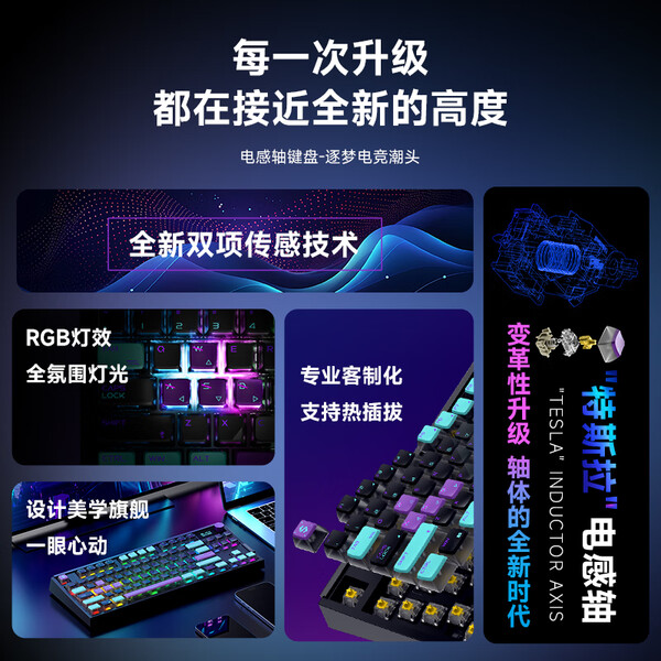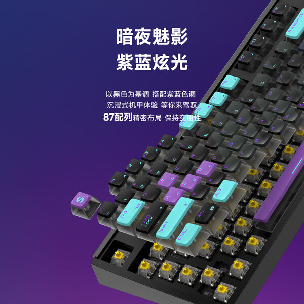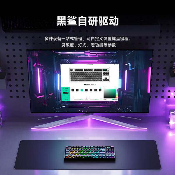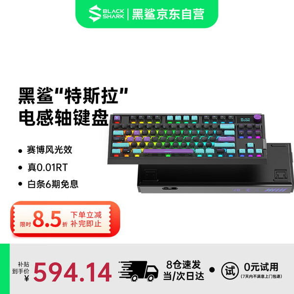 黑鲨磁轴电感轴电竞游戏键盘F87三模连接FPS/无畏契约/瓦罗兰特/三角洲无线RT赛博款