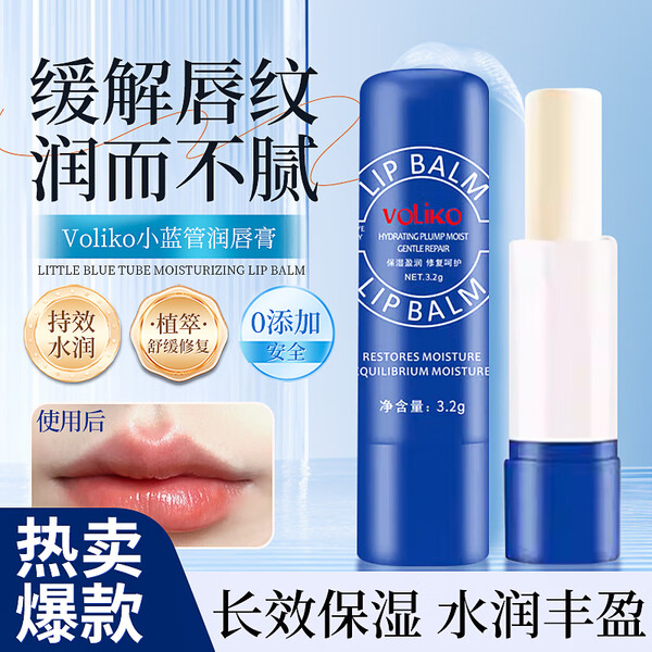 美式Voliko小蓝瓶罐装女保湿滋润补水润唇膏 小蓝瓶唇膏-3.2g