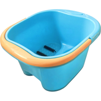 泡脚桶高深桶洗脚盆保温加厚足浴桶大号足疗盆按摩滑轮加厚洗脚桶 蓝色 40cm