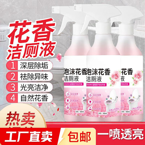 马桶清洁剂香氛洁厕泡泡强力去污垢去黄去异味除尿碱溶解剂清香型 香氛洁厕液500ml*2瓶(2个喷头)