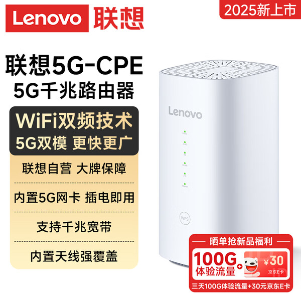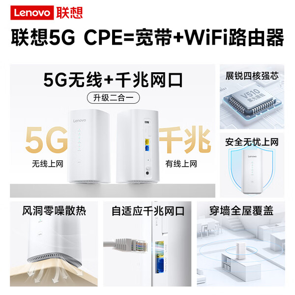 联想5G cpe路由器移动无线5g随身WiFi【自带流量-免宽带】千兆2025款免插卡全网通便携家用电脑小新