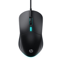 惠普(HP) 有线鼠标 商务办公家用经典左右手通用对称鼠标有线 电脑笔记本USB接口即插即用 发光轻音(黑色)