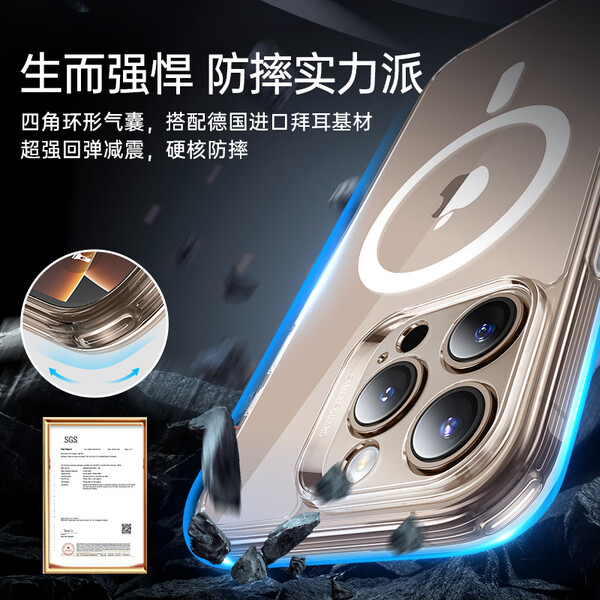 米狮【自带镜头膜】苹果15promax手机壳磁吸支架iphone15透明高级感14pro镜头全包13/16pro/17保护套 【钛原色】带镜头膜 气囊防摔 高 iphone11