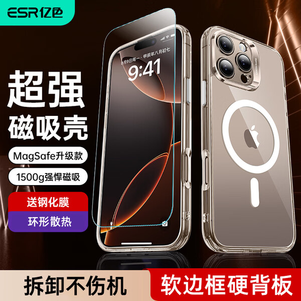 亿色【安全无铅认证】适用iphone16promax手机壳苹果15promax保护壳16/15系列Magsafe磁吸充电防摔防刮 【剔透白】磁吸壳+钢化膜 苹果16