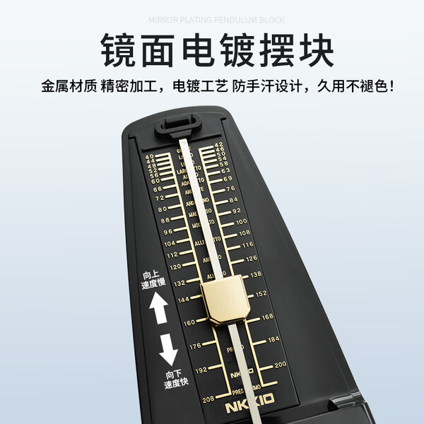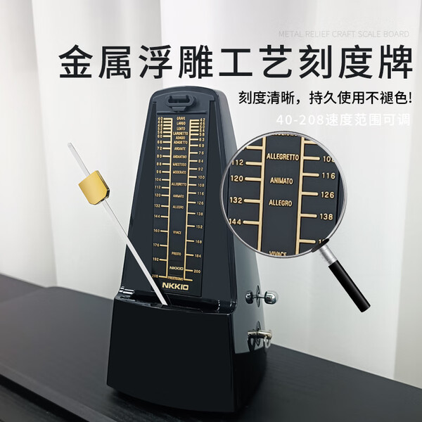 NKKIO尼康节拍器是日本进口的高品质乐器配件,适用于钢琴、吉他等多种乐器的考级和练习。经典款黑色外观设计简约大方,符合专业演奏者的审美需求。商品优势主要体现在稳定可靠的性能上。机芯精准灵敏,节拍准确无误;音量清晰可调,操作简便易学;同时具备多种节拍模式选择,满足不同曲目和速度要求。购买建议:对于热爱音乐、追求专业表现的人士来说,NKKIO尼康节拍器绝对是一个值得投资的选择。使用这款产品将带来更加规范严谨的节奏感受,并提升您在考级或演出时的表现水平。