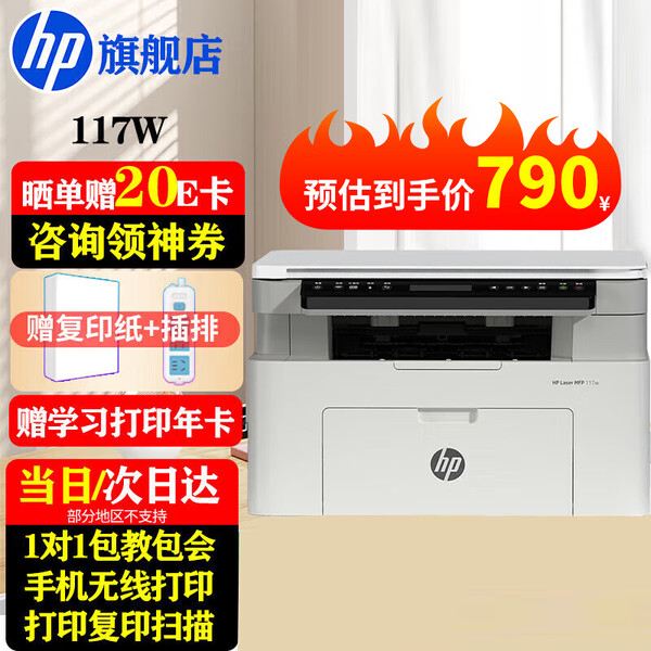 惠普(HP)117w打印机A4黑白激光打印复印扫描多功能一体机无线wifi学生作业家用小型办公1136w/1188w焕新版 117w(手机无线打印)116w同系列
