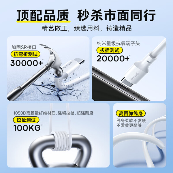 倍思Type-C数据线6A超级快充100W/66W充电线USB-C车载适用华为pura70/Mate70荣耀小米平板手机5A线1.5M