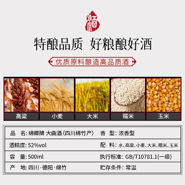 扳倒井酒 醇香 浓香型 纯粮酿造 光瓶口粮酒 山东白酒 52度 500mL 1瓶