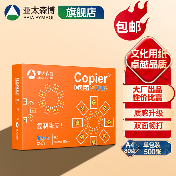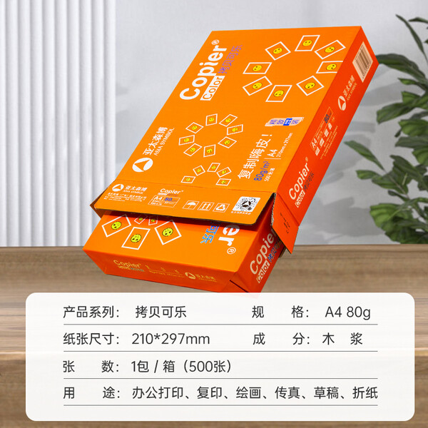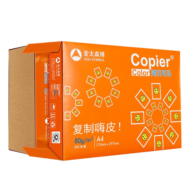 亚太森博 拷贝可乐 橙可乐 A4纸A4打印纸A4复印纸 多功能双面打印办公用纸木浆纸草稿纸画图琴谱打包邮 【橙可乐A4-80g-1包 500张】加固外盒