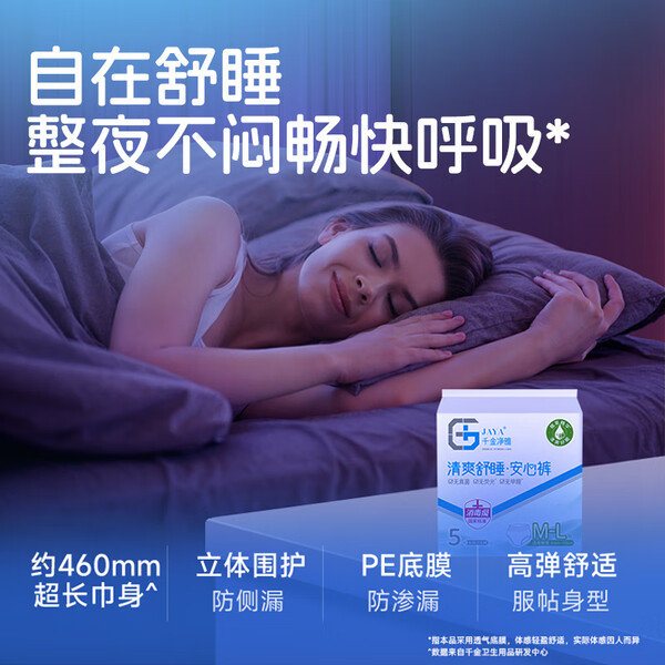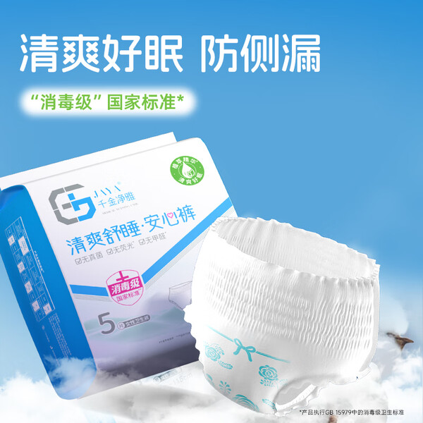 米菲Miffy安睡裤女经期高腰大码防侧漏夜用安全裤卫生巾生理期安心裤 S-M码 5条 80-100斤 1包5条